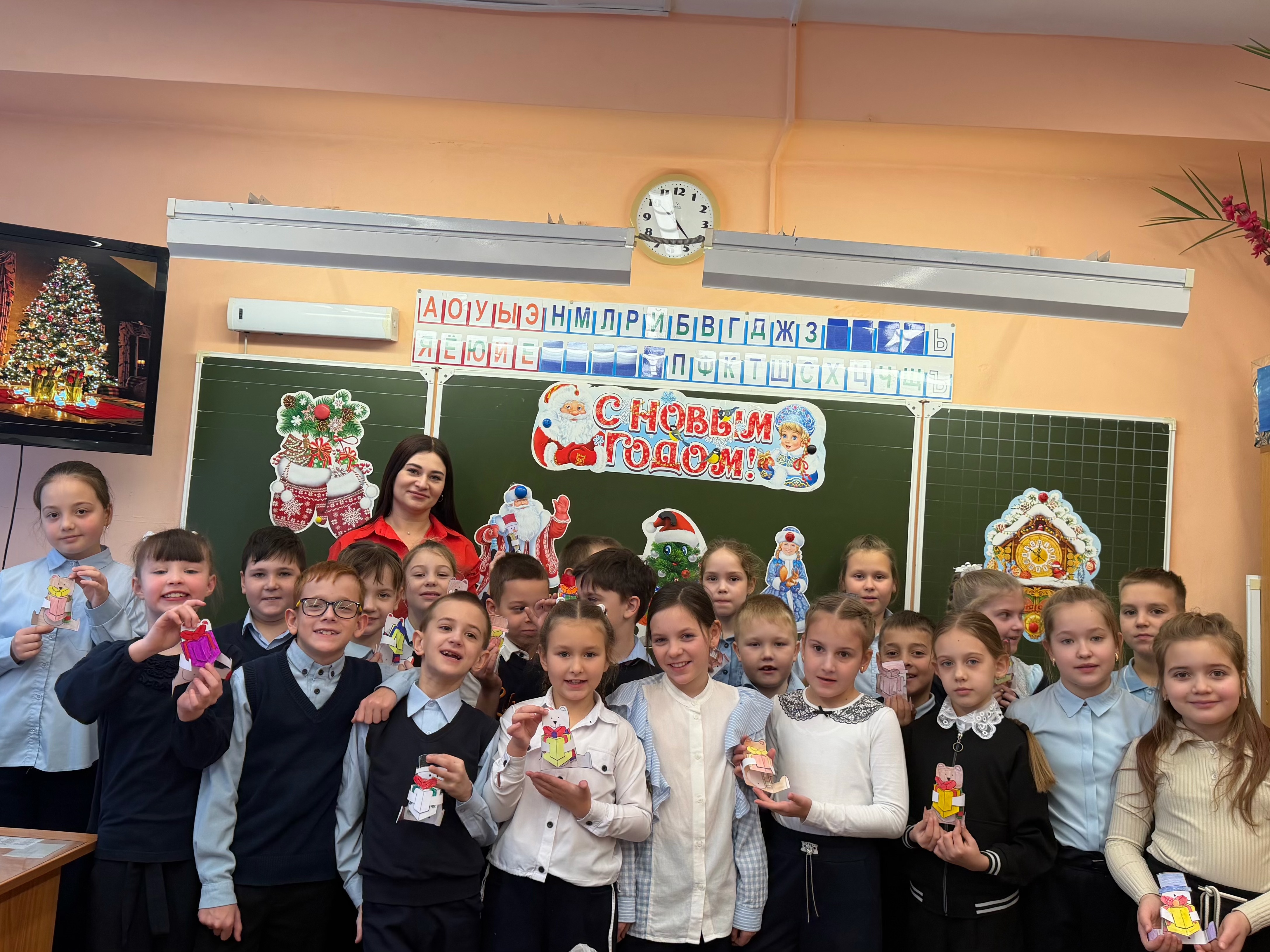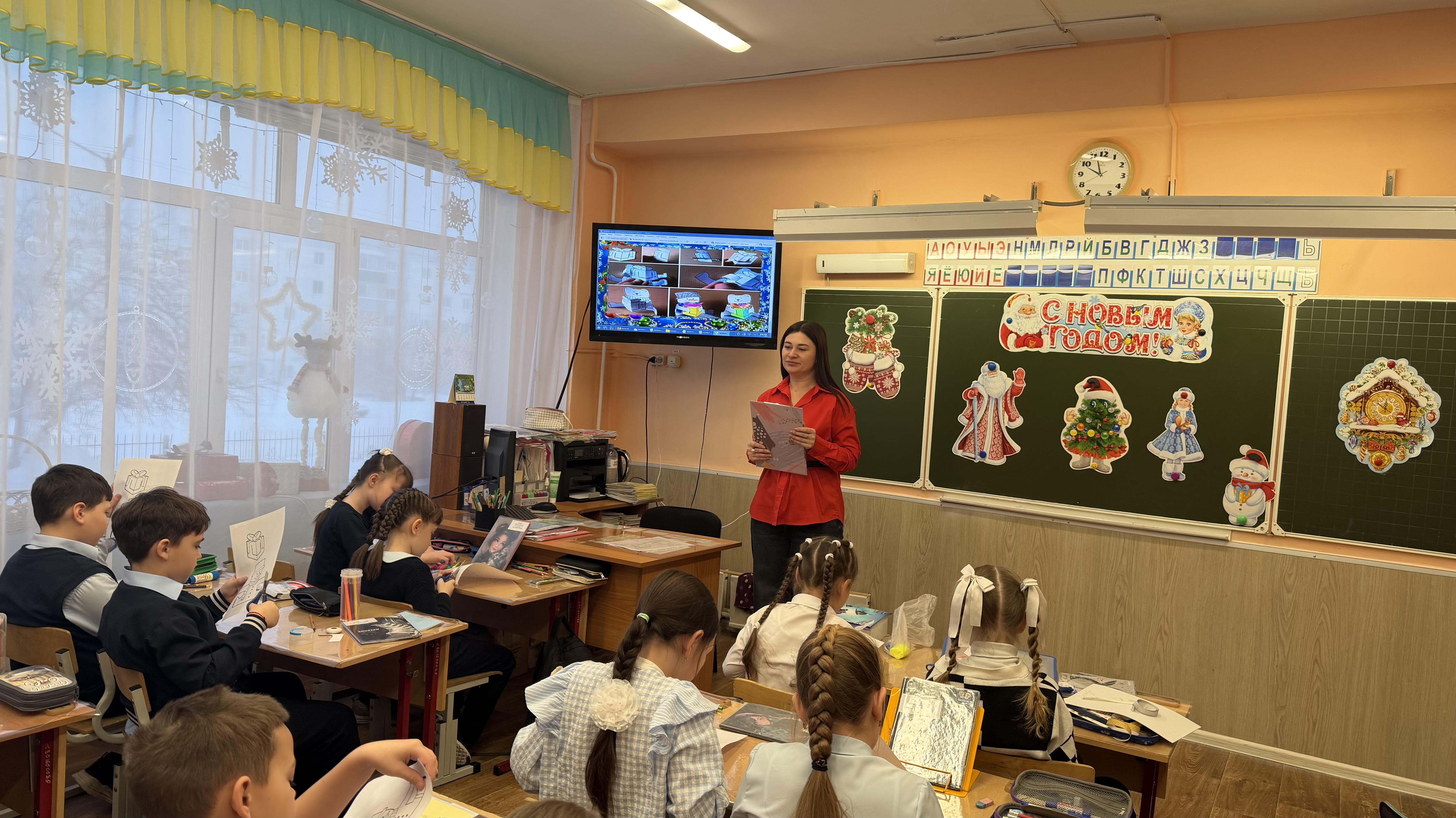 Завершилась встреча веселой «Новогодней снежной викториной». Школьники отвечали на вопросы, вспоминая любимые сказки и мультфильмы, связанные с зимой и Новым годом. Легкие новогодние мелодии, звучавшие в классе, словно по волшебству переносили всех в мир зимней сказки, создавая радостное настроение.
