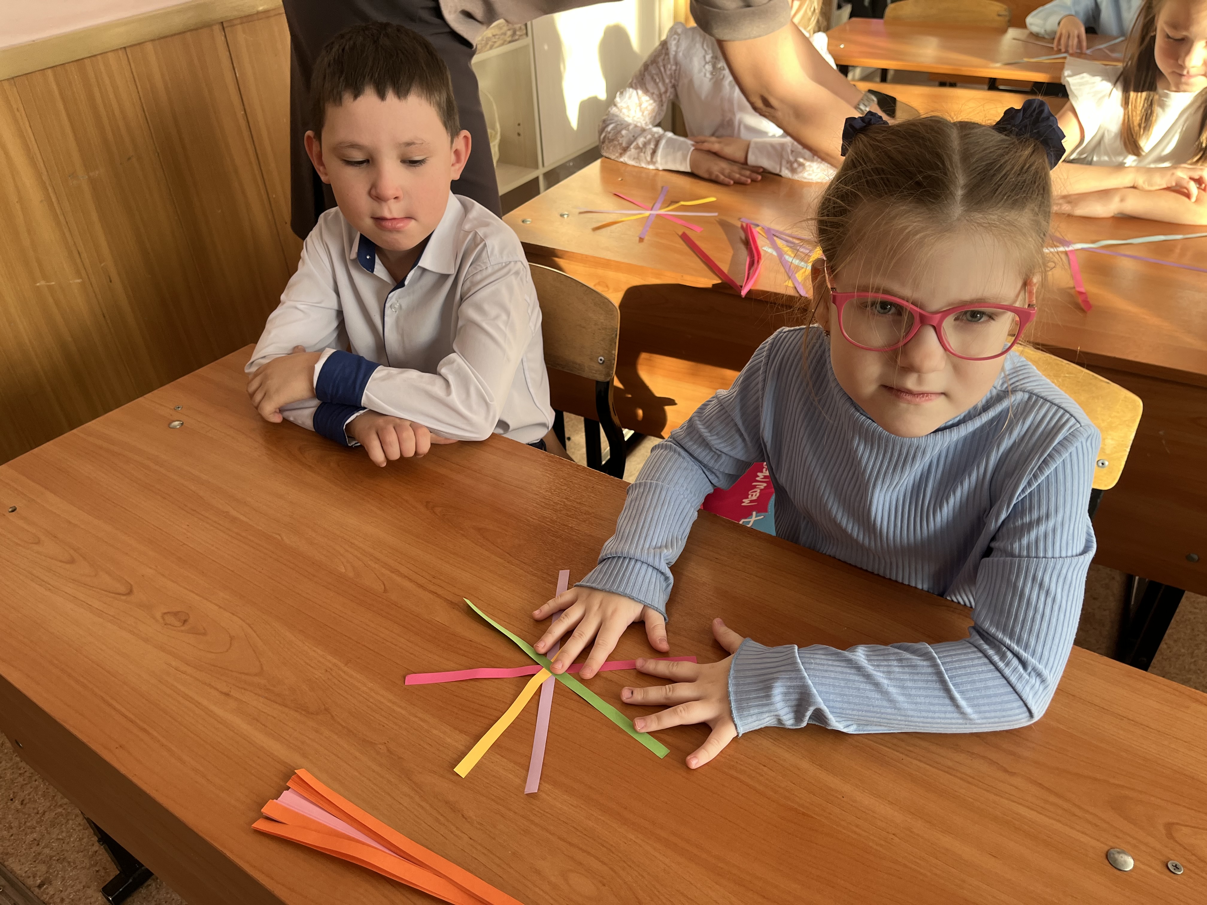 В практической части мастер-класса к ребятам присоединилась Оксана Витальевна Станкова, мама первоклассницы Александры. Под руководством библиотекарей, дети и семья Станковых совместно трудились, создавая новогодние фонарики из ярких полосок цветной бумаги. Каждый участник проявил фантазию, выбирая цвета для своей неповторимой новогодней игрушки. Время пролетело быстро, было весело, интересно и познавательно.