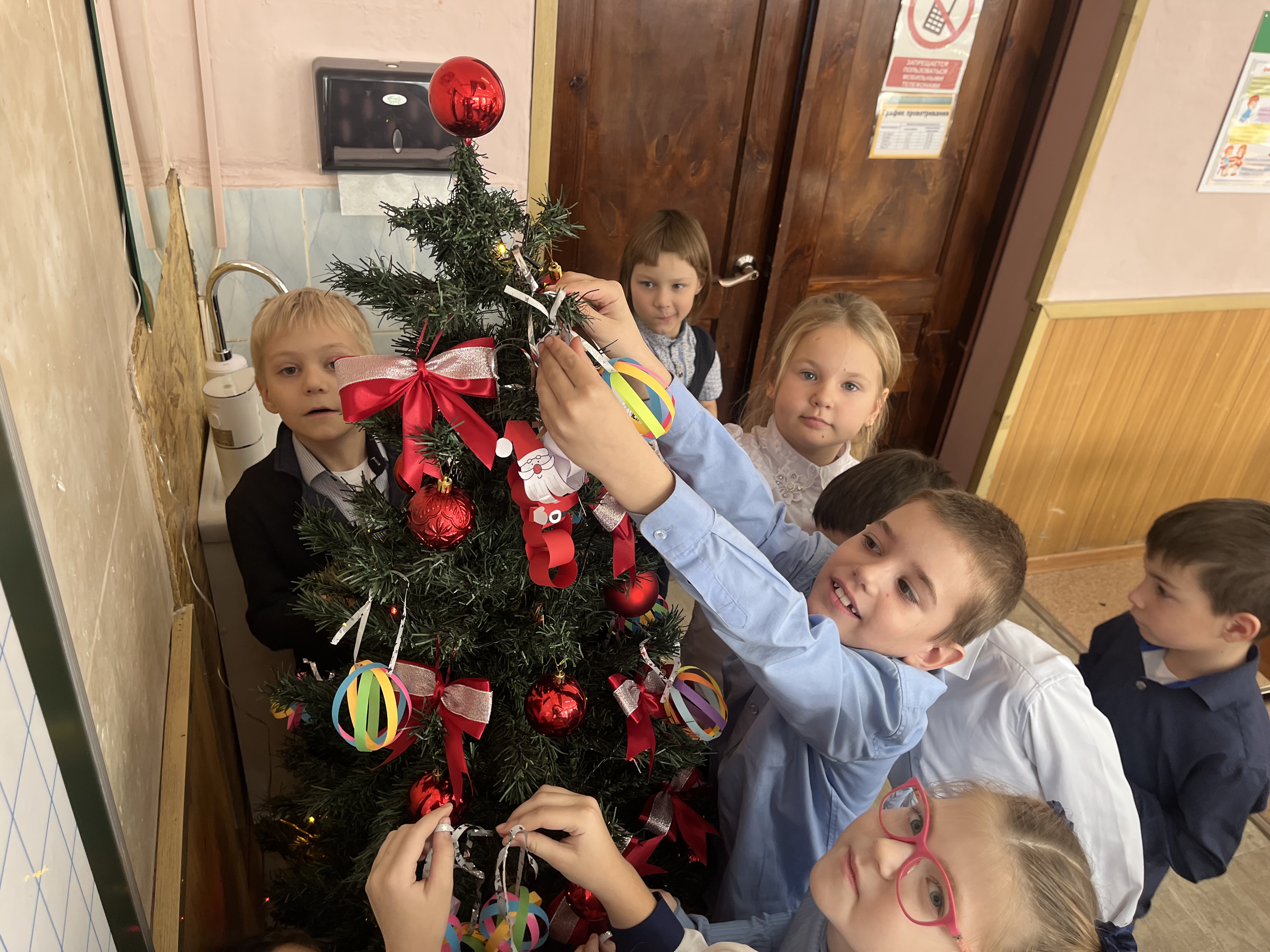 В завершение встречи участники мероприятия дружно украсили новогодними фонариками пушистую красавицу в классе, сделали фото на память.