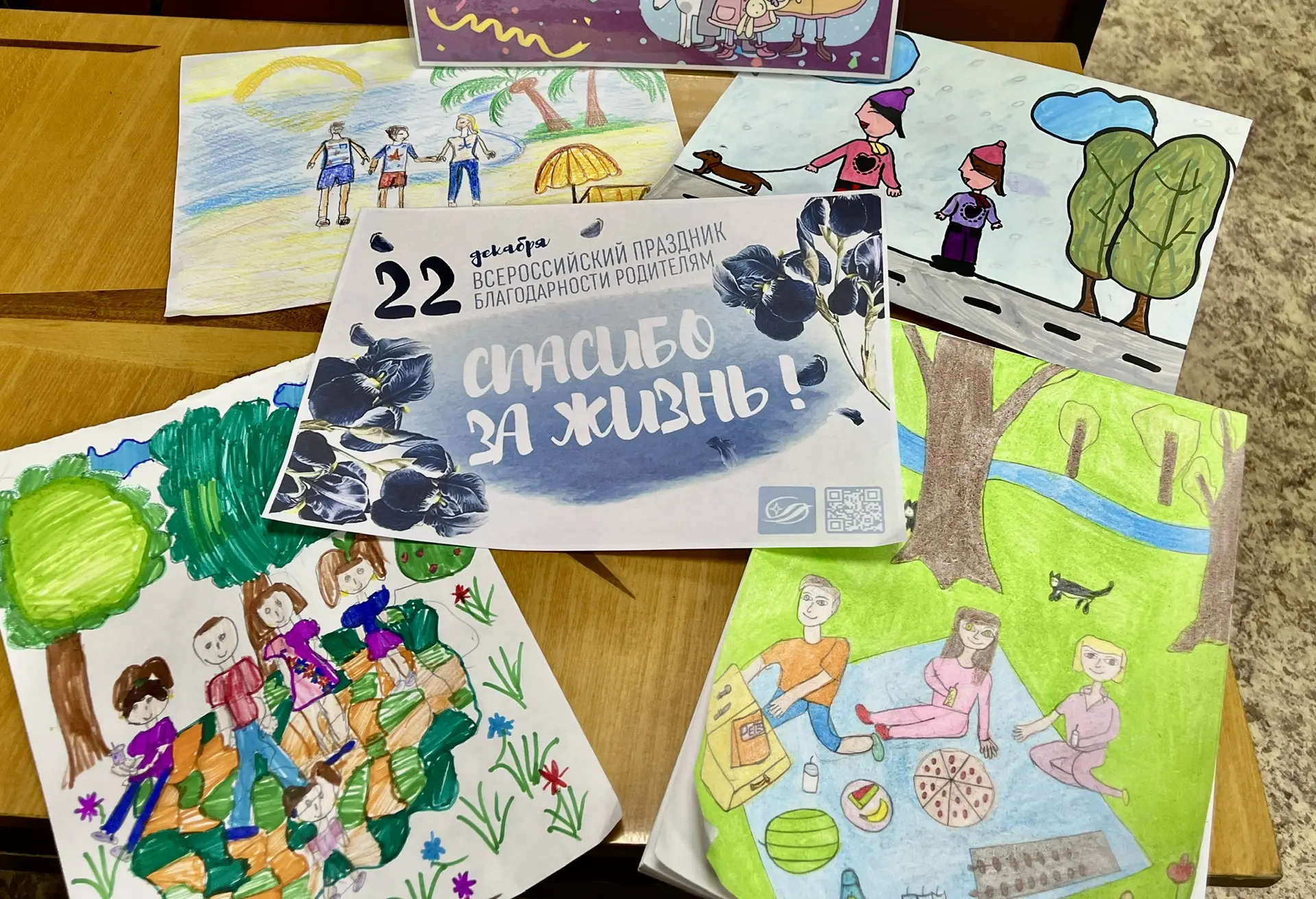 Ребятишкам были предложены тематические открытки, где они могли написать самые теплые пожелания мамам и папам, а некоторые добавляли рисунки.