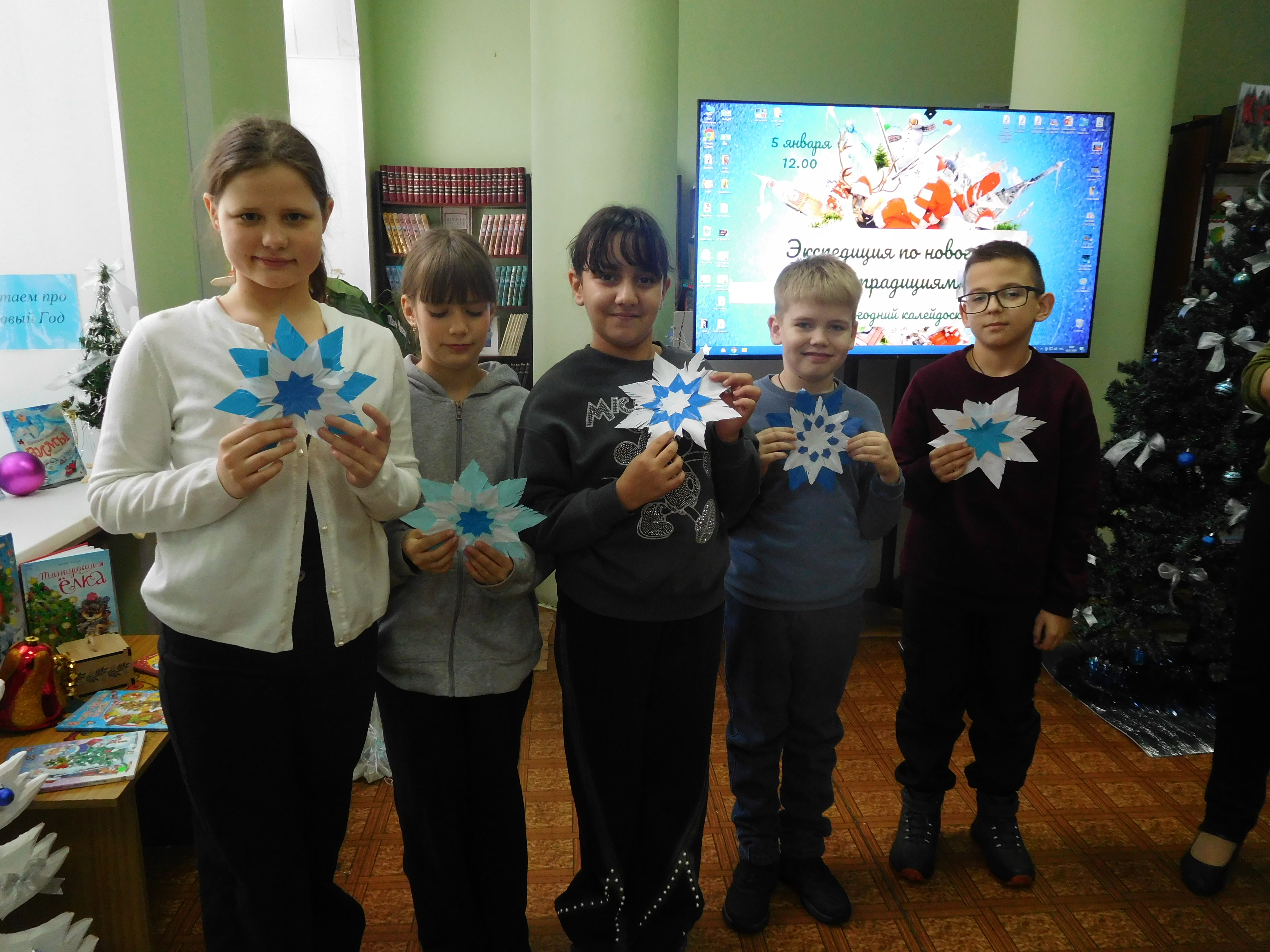 5 января в Центральной детской библиотеке прошел новогодний калейдоскоп «Экспедиция по новогодним традициям». Новый год – праздник волшебства и чудес, который с надеждой на лучшее ждут дети и взрослые в разных уголках Земли. И в каждой стране есть свои «Деды Морозы» и свои новогодние традиции. В этот день в библиотеке произошло что-то поистине волшебное! Новогодний калейдоскоп собрал всех тех, кто готов был узнать много интересного о новогодних обычаях из всех уголков мира! Он подарил гостям библиотеки необычную экспедицию по новогодним традициям! Девчонки и мальчишки вместе с библиотекарем отправились в захватывающее путешествие по странам, где Новый год отмечают с особым размахом.