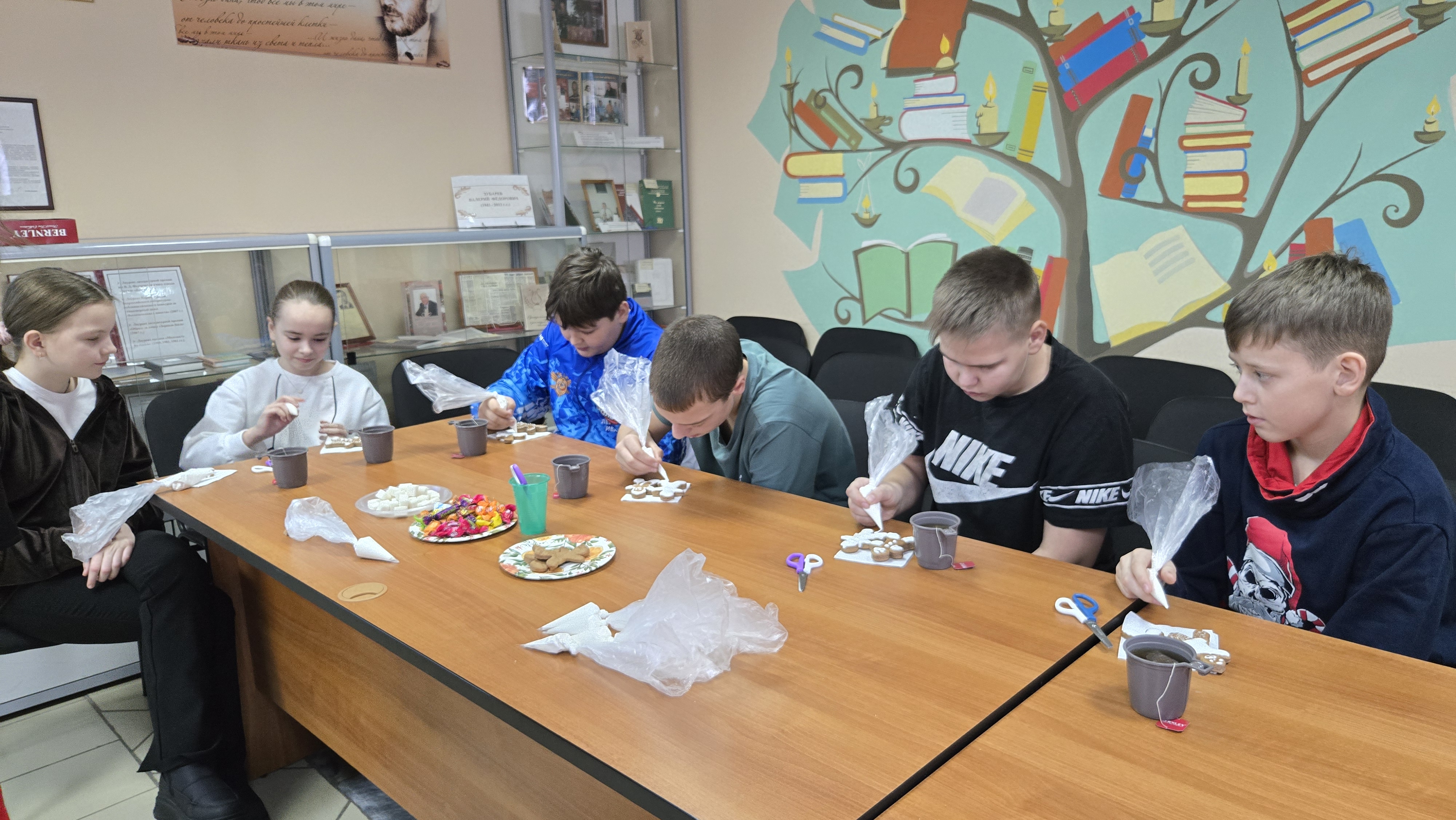 Гости с большим удовольствием приняли участие в увлекательной рождественской викторине, с радостью участвовали в творческом мастер-классе по росписи рождественских пряников. Для присутствующих была подготовлена книжная выставка «Книги, несущие свет», на полках которой читатели познакомились с душевными историями русских и зарубежных писателей, несущих в мир мудрость и радость предрождественских чудес.