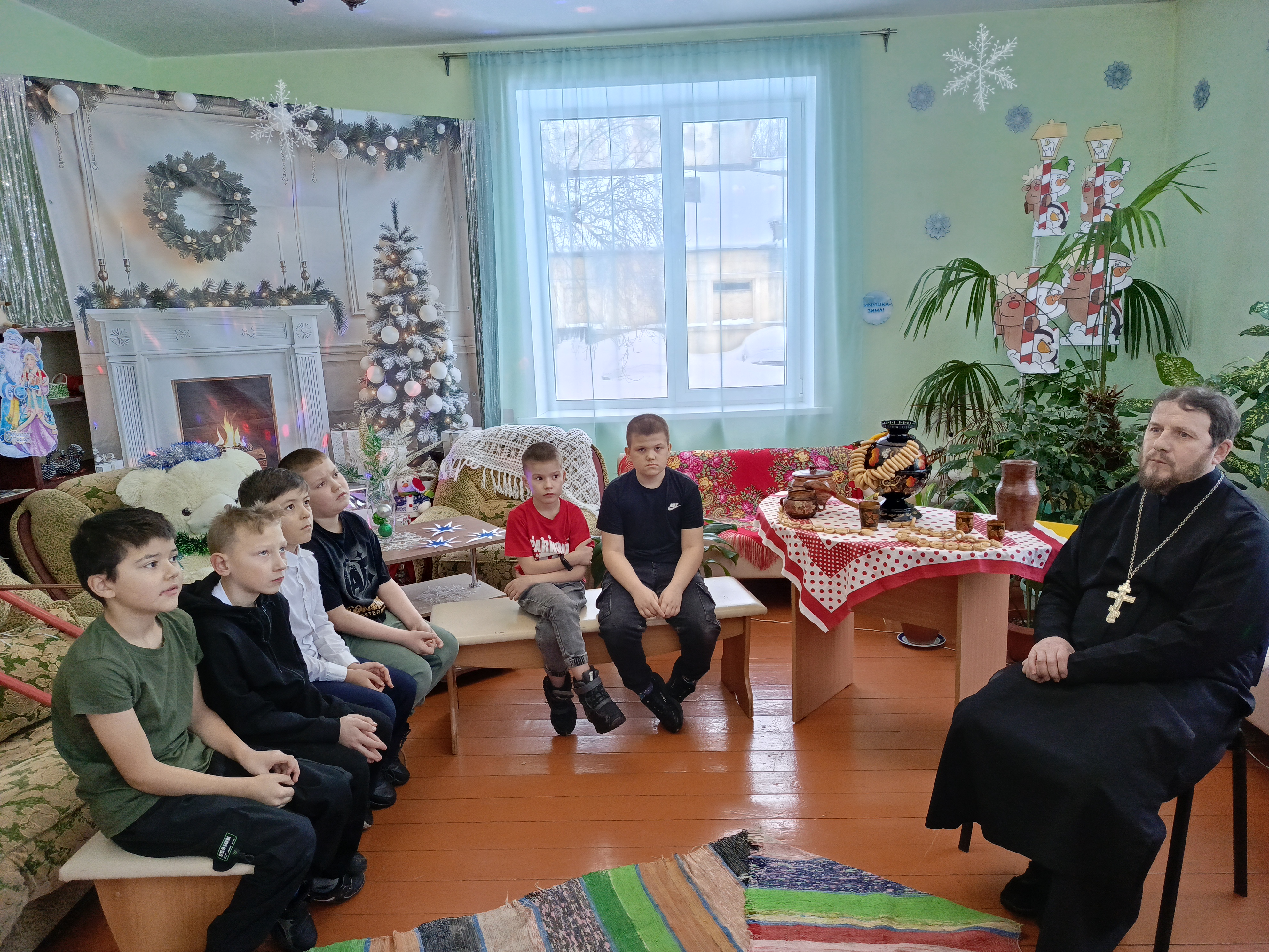 Перед мальчишками и девчонками выступил Андрей Корнев, представитель православной церкви. Его рассказ о Рождестве Христовом получился живым, доступным и по‑настоящему душевным. Священнослужитель последовательно раскрыл перед ребятами ключевые моменты праздника: кратко и образно пересказал евангельское повествование о рождении Иисуса Христа, объяснил духовный смысл торжества – одного из главных христианских праздников: рождение Спасителя, который пришёл в мир, чтобы принести людям любовь и прощение, символ надежды и добра для всех верующих. Отвечая на вопросы, гость посиделок познакомил ребят с народными и церковными традициями Рождества. Это пост как время подготовки к празднику, всенощное бдение и праздничная литургия в храмах, колядки и рождественские песнопения, семейный ужин в Сочельник, а также украшение дома символами Рождества, как звезда, ангелы, вертеп. Беседа завершилась тёплым поздравлением: гость пожелал ребятам сохранить в сердцах свет Рождества, быть добрыми и внимательными к окружающим и пригласил посетить праздничное богослужение в храме.