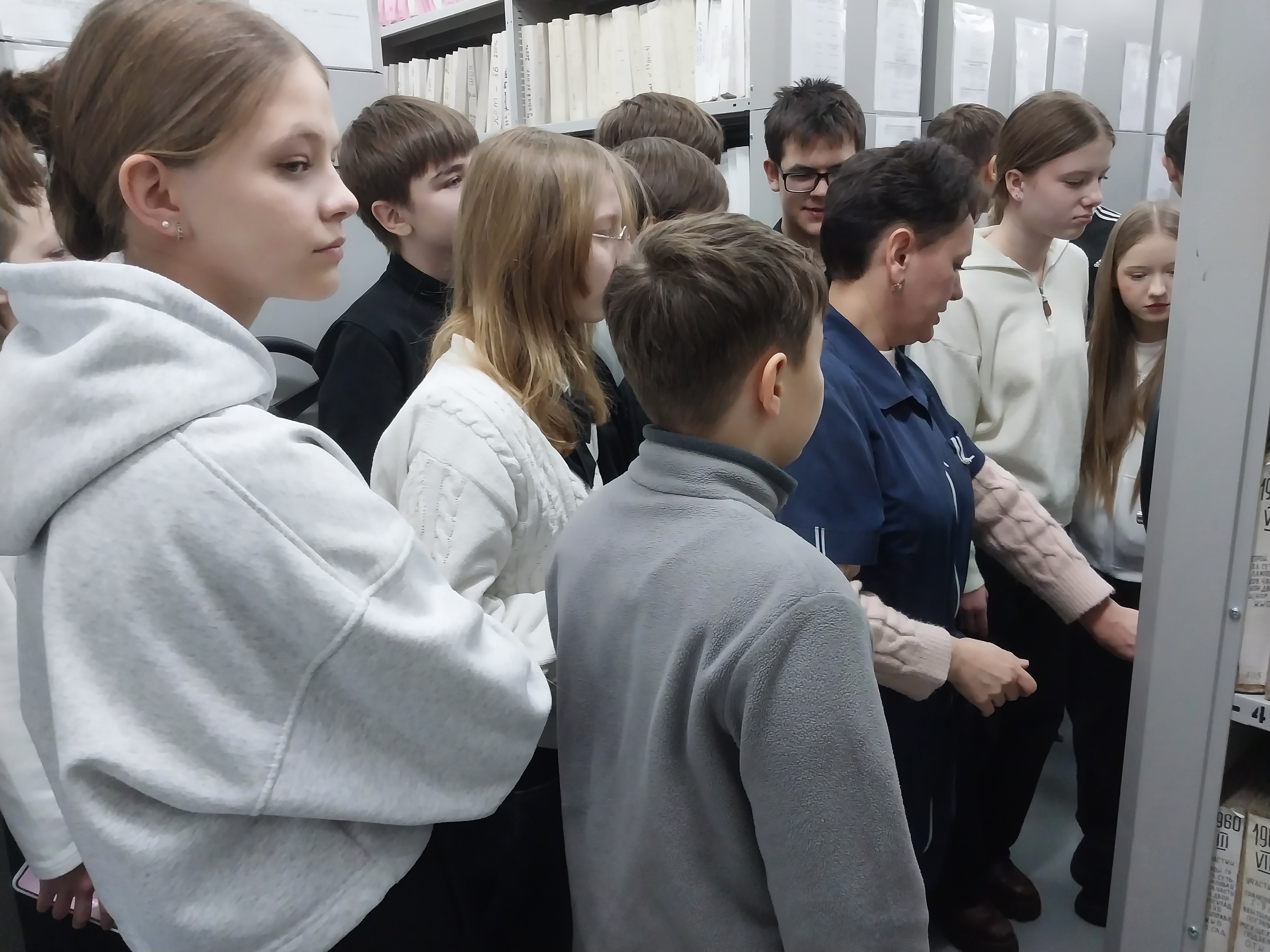 Школьники узнали о роли, функциях и назначении важного городского учреждения. Ребята смогли понять, что городской архив отвечает всем современным требованиям. В нем имеются 2 просторных хранилища с раздвижными и передвигающимися стеллажами, лифтом для подъёма документов. Старшеклассники оценили технологичность системы безопасности, защищающей архивные книги от пожара, затопления, излишнего света, влаги, создающей оптимальный температурный режим.
