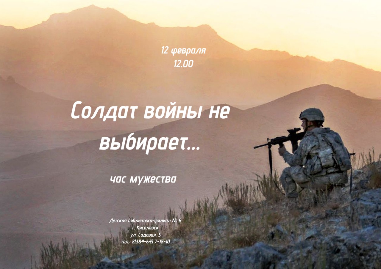 В преддверии Дня памяти о россиянах, исполнивших служебный долг за пределами Отечества, библиотекари приглашают всех желающих на памятную встречу, где вспомнят историю памятной даты, расскажут о подвигах и судьбах наших земляков, выполнивших интернациональный долг, не только ветеранов в Афганистане и на Северном Кавказе, но и всех наших соотечественников, кто в разные годы отстаивал интересы страны за ее рубежами.