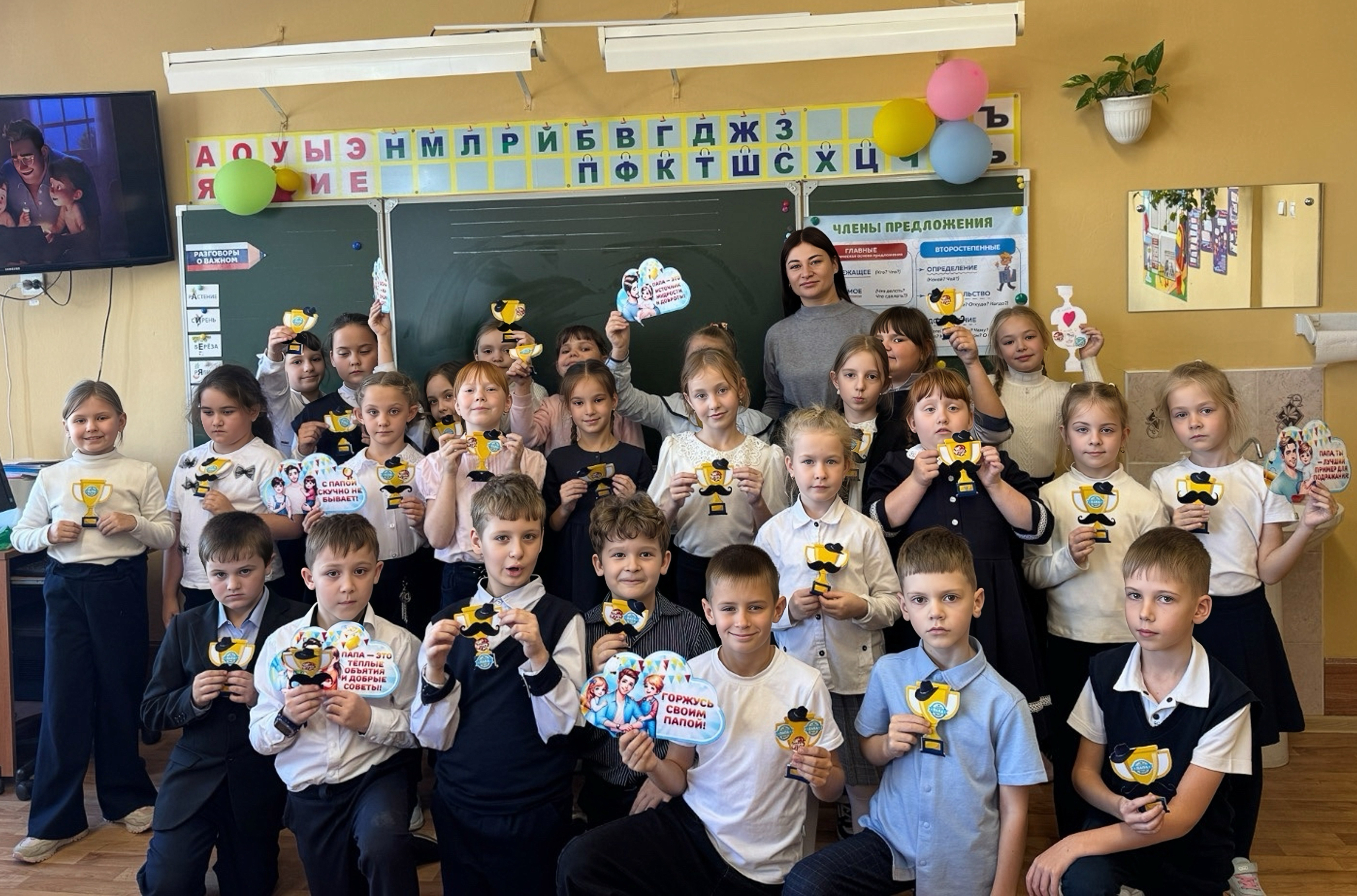 В игре «Папин комплимент» школьники подбирали прилагательные, начинающиеся на букву «П», характеризующие пап, подчеркивая их преданность, порядочность, поддержку и, конечно же, потрясающее чувство юмора.