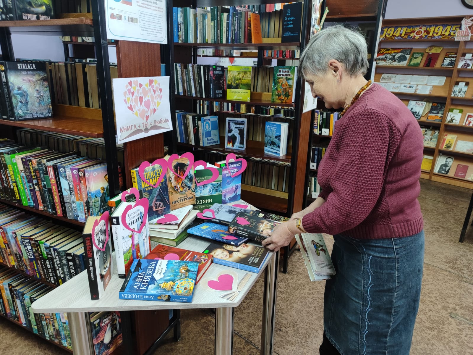 Любители чтения постарше проходили тест-опрос «Узнай литературного героя», вспоминали персонажей былин, сказок и их сказочные дома, а также героев русской классики. А богатый выбор литературы на все вкусы, заботливо подготовленный работниками библиотеки на выставке-рекомендации «Книга + ты = любовь», позволил любителям книг уйти не с пустыми руками.
