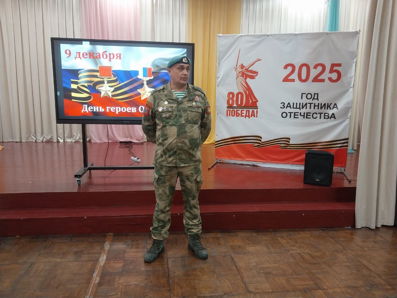 Рассказывая о высшем звании Российской Федерации – Герой России, специалисты библиотеки поведали о подвиге киселевчанина Максима Апенкина. Накануне, 8 декабря 2025 года, ему посмертно присвоили звание Героя России. Награду – медаль «Золотая звезда» вручили семье участника специальной военной операции.