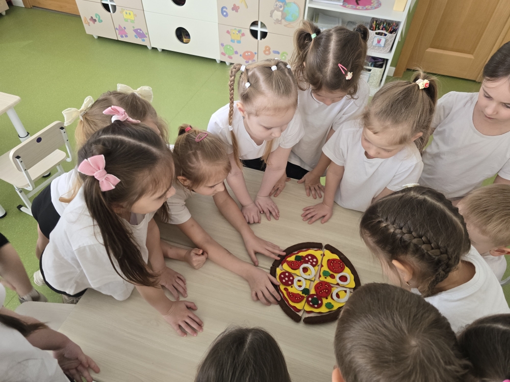 Особенно малышам понравилась игра «Собери пиццу». Детям предложили собрать свою собственную мини-пиццу из предложенных продуктов, разделив ингредиенты на две группы: полезные и менее полезные. Затем каждый ребенок должен был объяснить свой выбор, доказывая, почему тот или иной продукт попал именно в эту категорию.