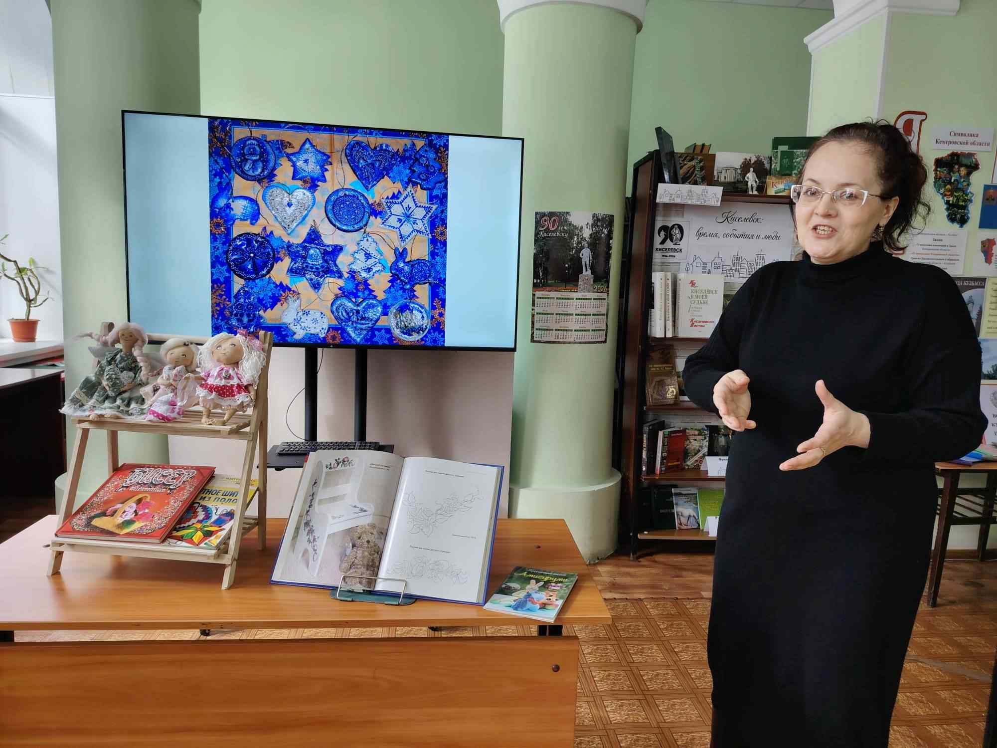На встречу была приглашена Воробьева Наталья Андреевна – киселёвская мастерица, создатель авторских кукол. Она рассказала о своих творческих увлечениях и источниках вдохновения. Творчество – это радость, которой надо делиться - считает Наталья Андреевна. Передавая куклу другому человеку, она отдаёт ему свою позитивную энергию, а человек, получивший куклу своей радостью обогащает мастерицу, и она может создать новую поделку.