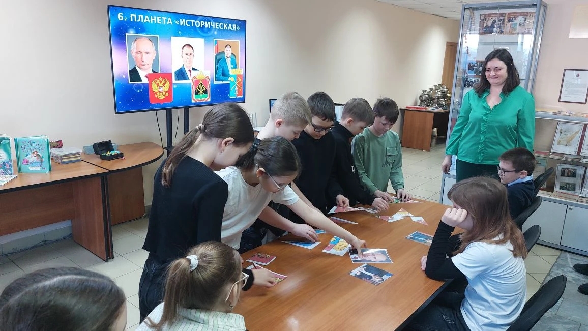 Вместе со своими гостями библиотечные специалисты вспомнили великих деятелей истории, изучили гербы и флаги России, Кузбасса и родного города Киселевска, поговорили о богатстве родного края, сделав остановку на планете «Историческая».