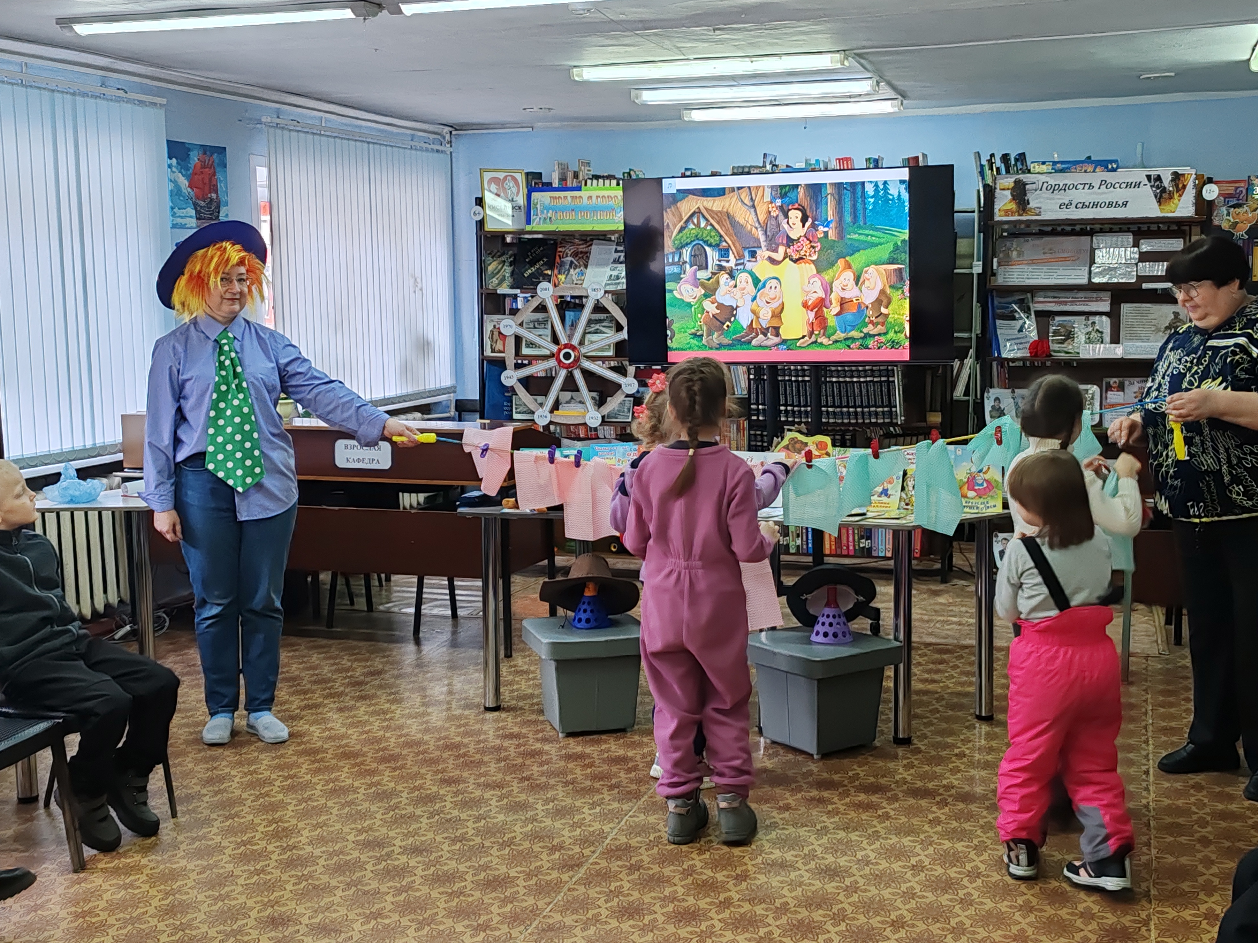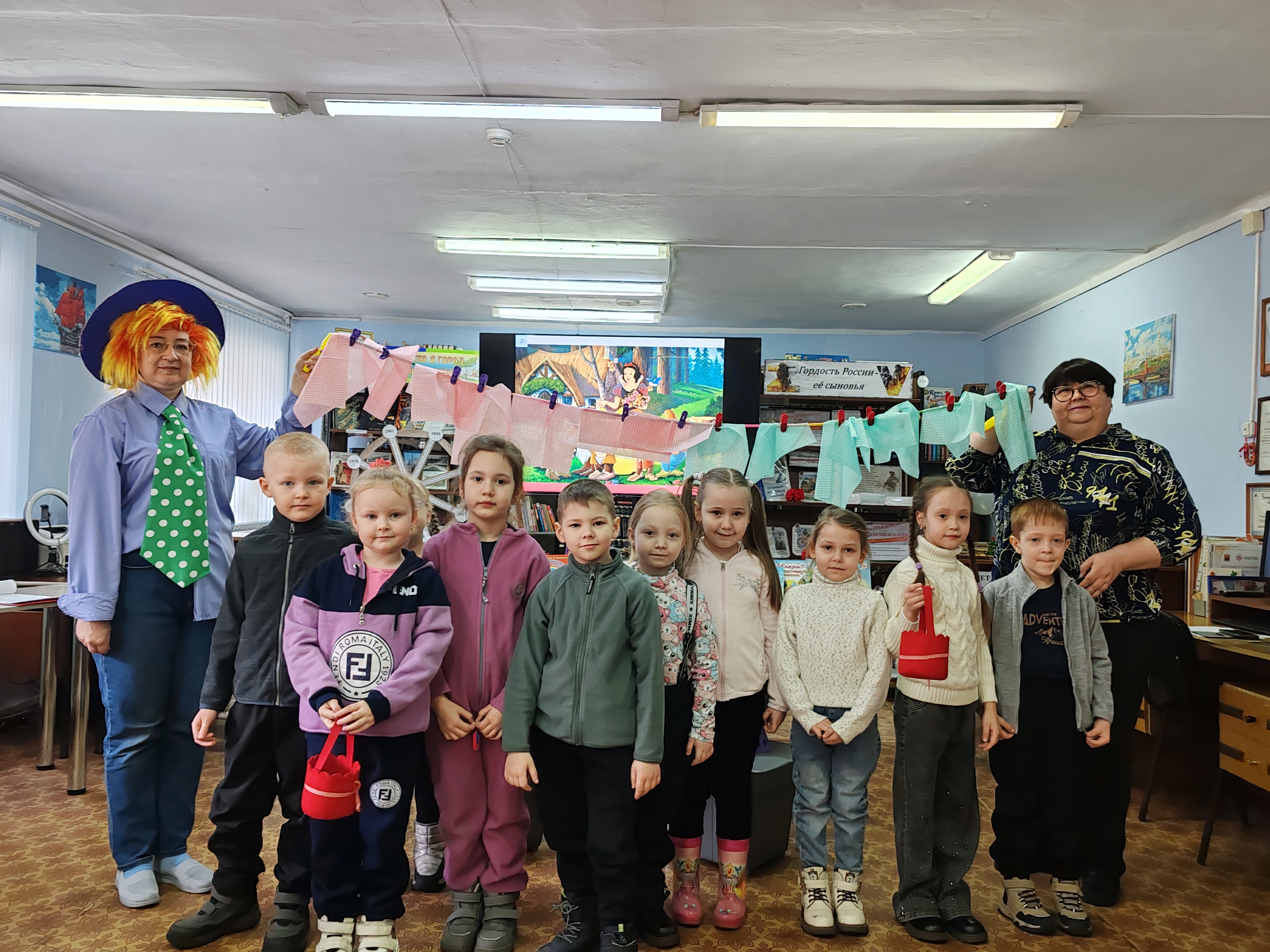 Ярким событием для пришедших на мероприятия ребятишек стала встреча с озорным Незнайкой. Он приготовил для маленьких читателей много испытаний, с которыми малыши отлично справились. Дети разгадывали загадки-путаницы, соревновались в ловкости в эстафете «Белоснежка и семь гномов», показали свой артистизм в задании «Кот в сапогах». Ребята с азартом помогали Незнайке подбирать последние слова в стихотворениях о его друзьях-коротышках и книжках.