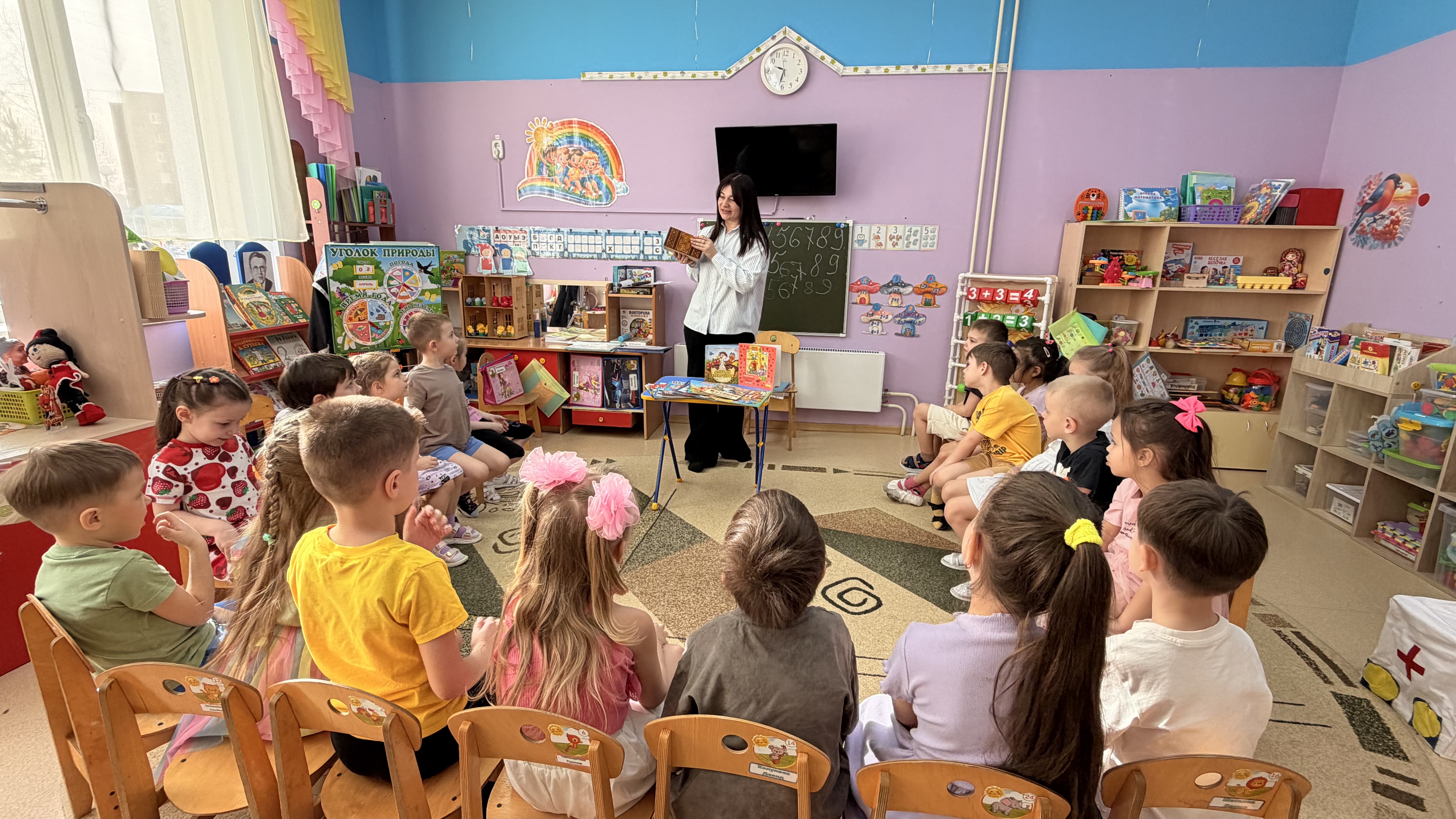 Ведущая рассказала ребятам об истории этого праздника, который традиционно проходит в конце марта-начале апреля в библиотеках, школах и детских садах по всей стране. Дети узнали, что в эти дни для них готовят встречи с писателями, книжные выставки, викторины и спектакли.