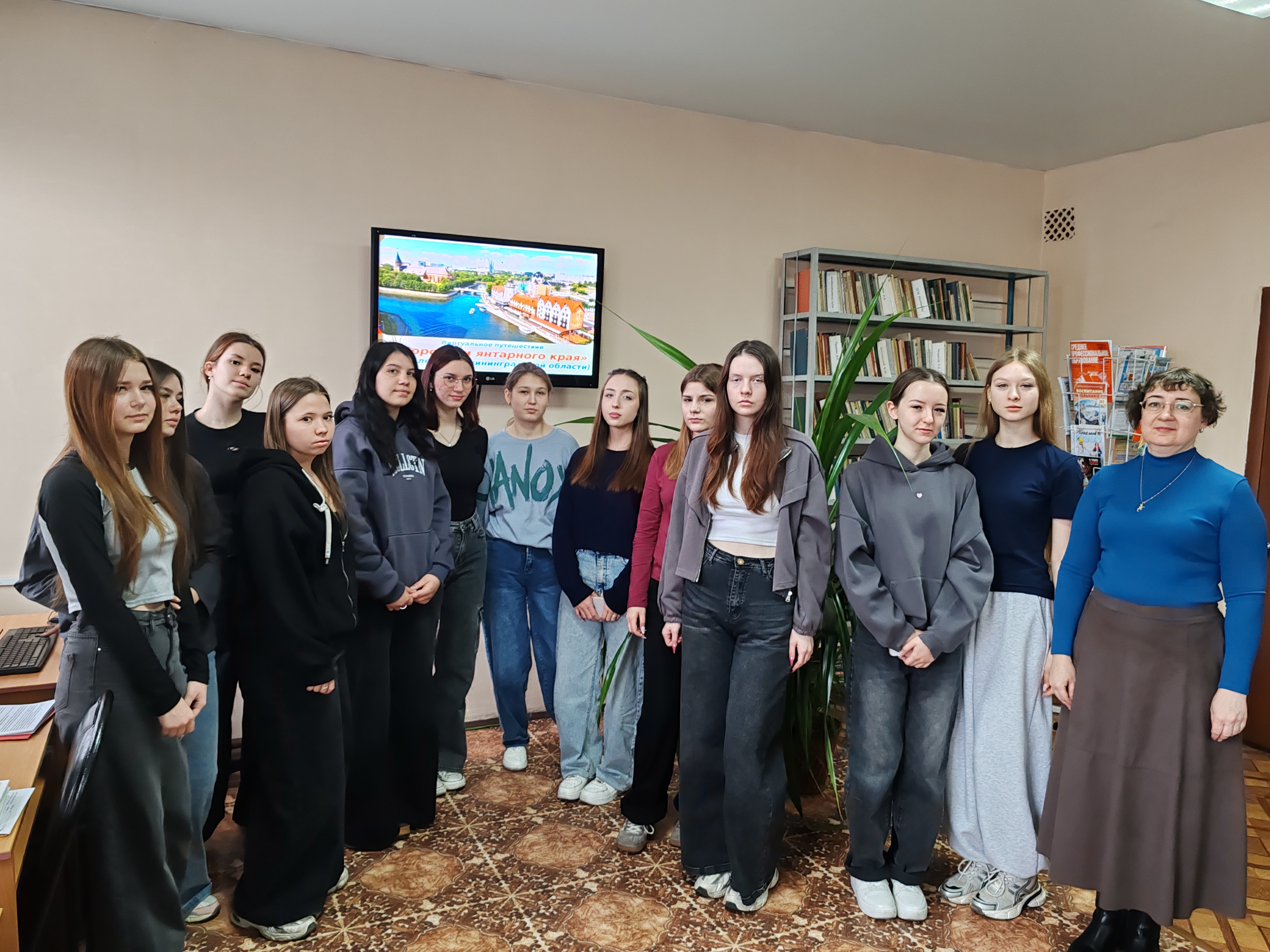 7 апреля в рамках празднования 80-летия Калининградской области специалисты библиотеки-филиала № 1 провели виртуальное путешествие «Дорогами янтарного края» для студентов Киселёвского педагогического колледжа имени И. А. Михалёва.