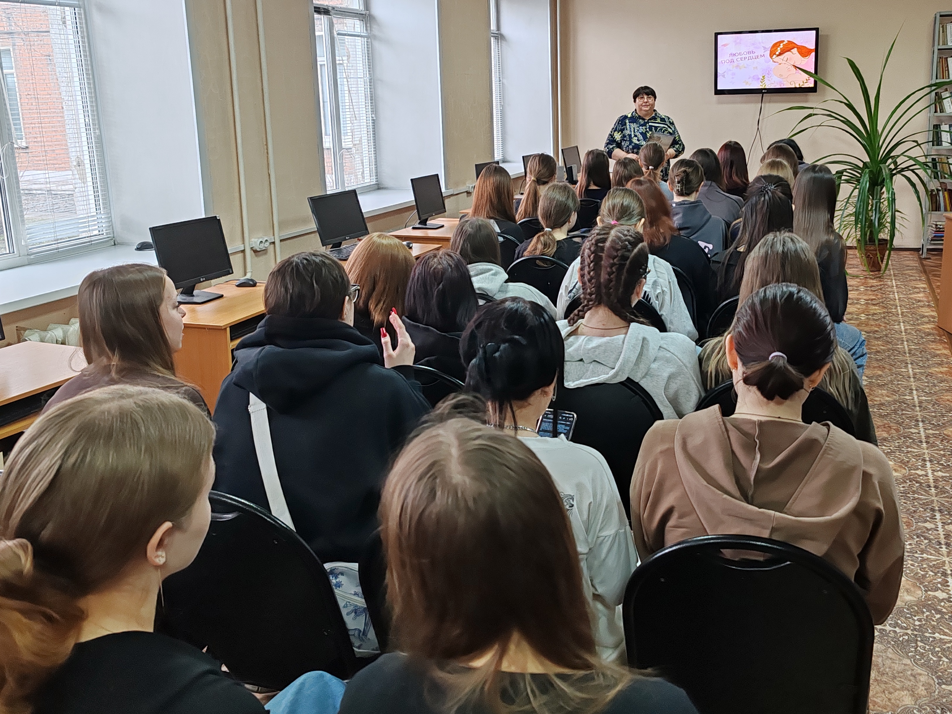 7 апреля специалисты библиотеки-филиала № 1 провели для студентов Киселёвского педагогического колледжа им. И. А. Михалёва урок нравственности «Любовь под сердцем».