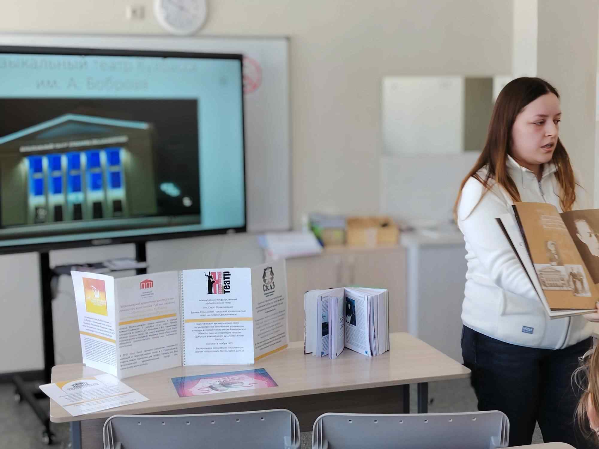 В дополнение к рассказу были продемонстрированы видеофрагменты спектаклей и приведены интересные исторические факты о развитии театрального искусства в регионе. Молодые люди узнали о процессе создания известных постановок, окунулись в атмосферу закулисных тайн и познакомились с особенностями театральных профессий, включая работу над декорациями и бутафорией для спектаклей.