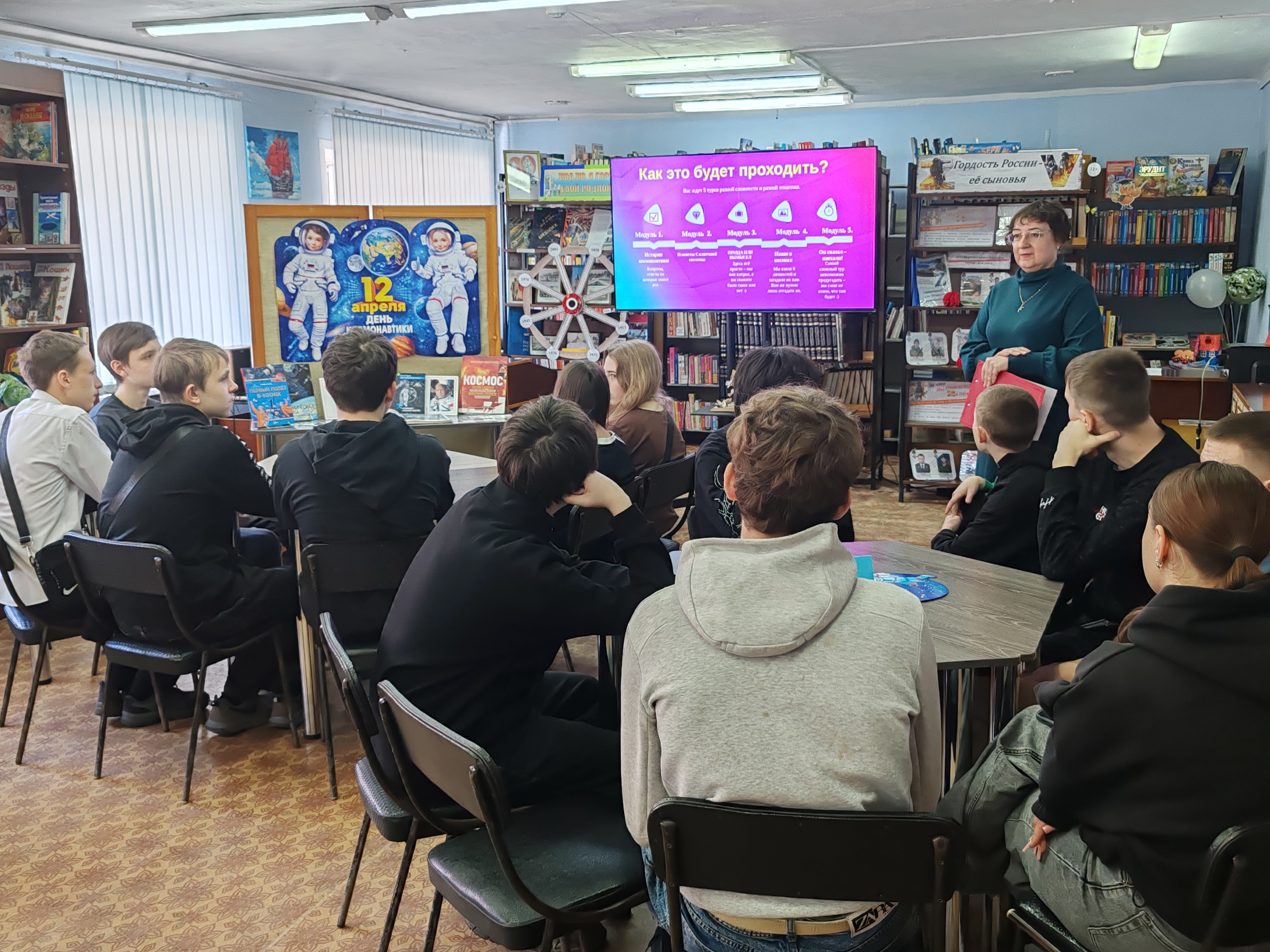 9 апреля рамках Недели космоса в Кузбассе специалисты библиотеки-филиала № 1 провели для держателей Пушкинской карты из школ № 11 и № 33 познавательно-игровую программу «Небо зовёт».
