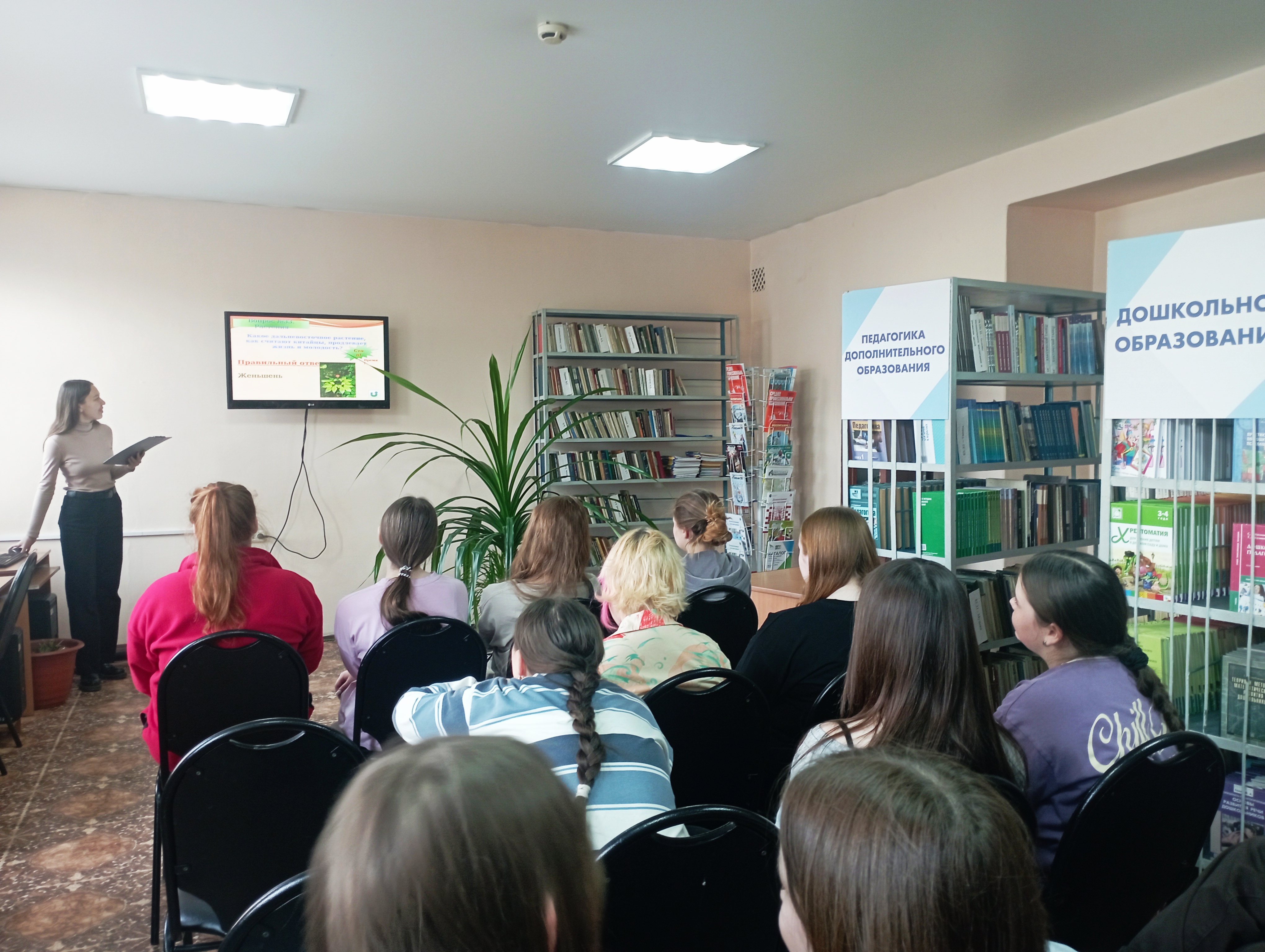 10 апреля специалисты библиотеки-филиала № 1 провели эрудит-шоу «ЭкоИгроМания» для членов клуба «Юность». Мероприятие прошло в рамках программы «Молодёжь – чтение – успех!» и объединило образование, творчество и экологическую ответственность молодежи в формате интерактивной игры.