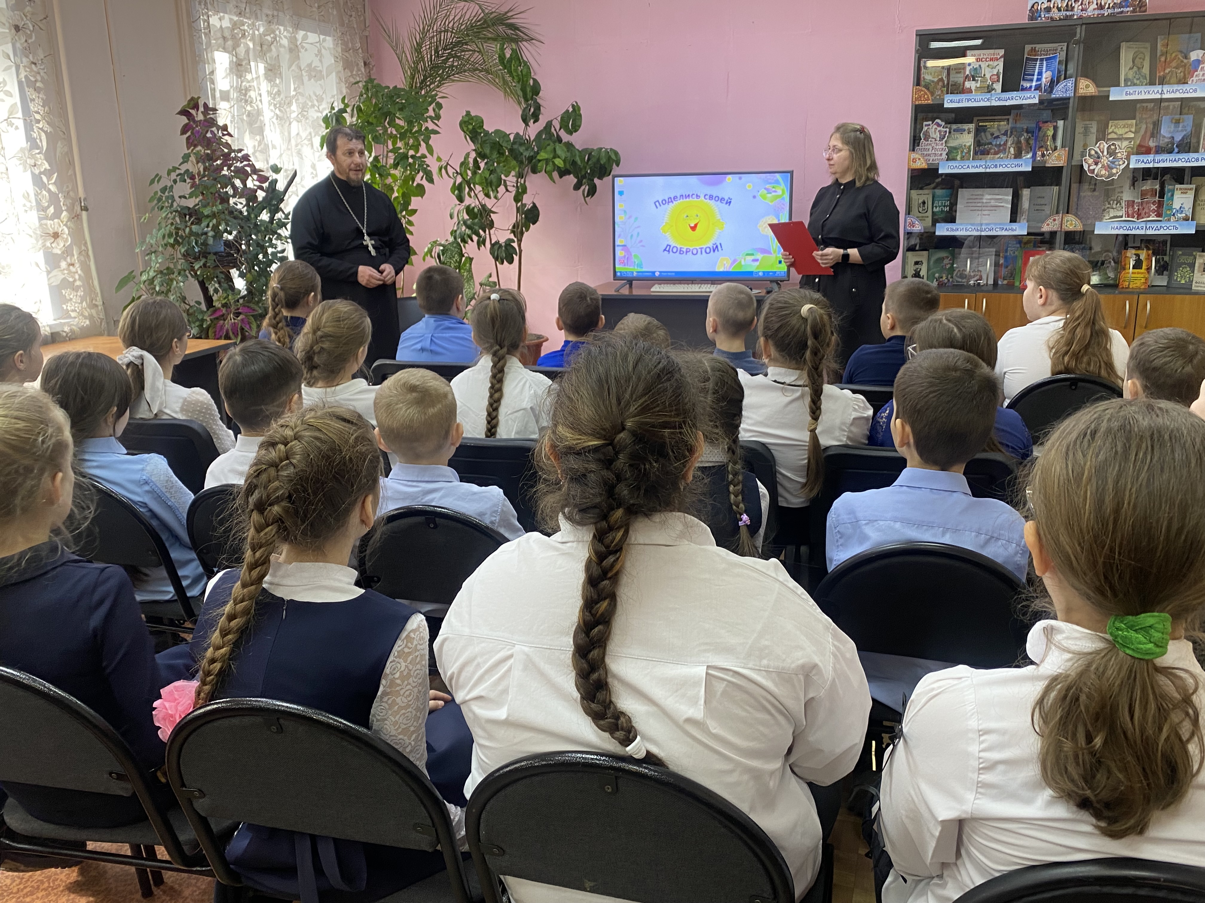 Сотрудники библиотеки организовали встречу «Открывая сердце для добра» с иереем Андреем Ивановичем Корневым, представителем православной организации. Мальчишки и девчонки с неподдельным интересом внимали словам священнослужителя. Отец Андрей рассказал ребятам о важности добрых дел, о том, как важно помогать ближним и проявлять заботу о тех, кто нуждается. Он привел множество примеров из жизни, показывающих, как даже самые простые поступки могут изменить мир к лучшему.