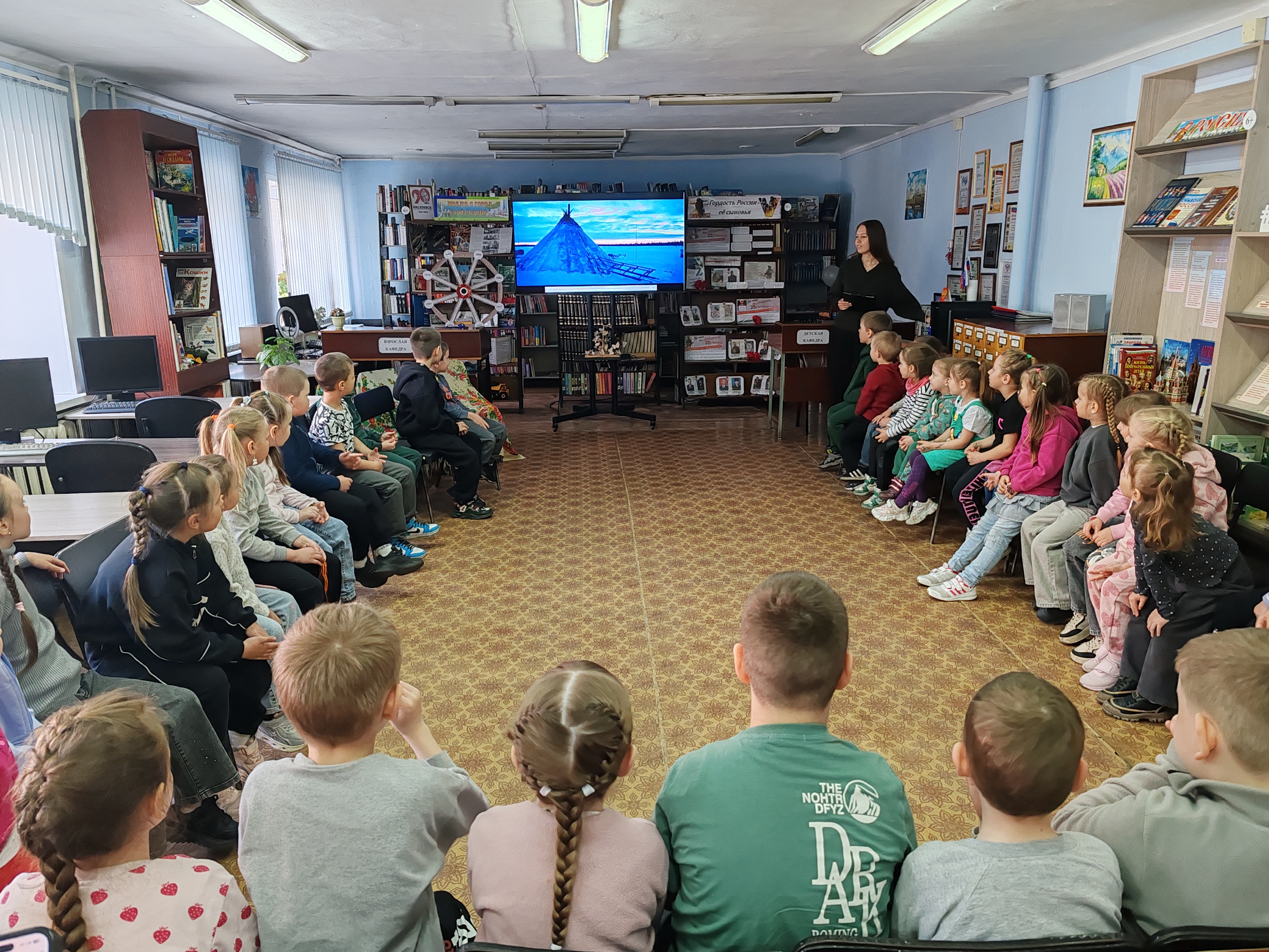 28 апреля в библиотеке‑филиале № 1 прошла познавательно‑игровая программа «Народов много – страна одна» , приуроченная ко Дню коренных малочисленных народов России. Участниками стали воспитанники детского сада № 37.